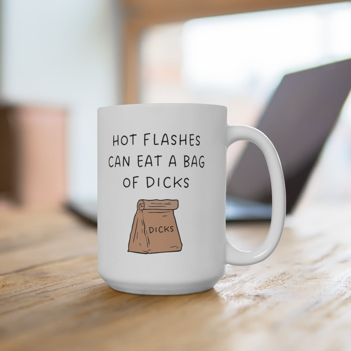 Hot Flashes Can Eat A Bag Of Dicks 15oz Ceramic Coffee Mug