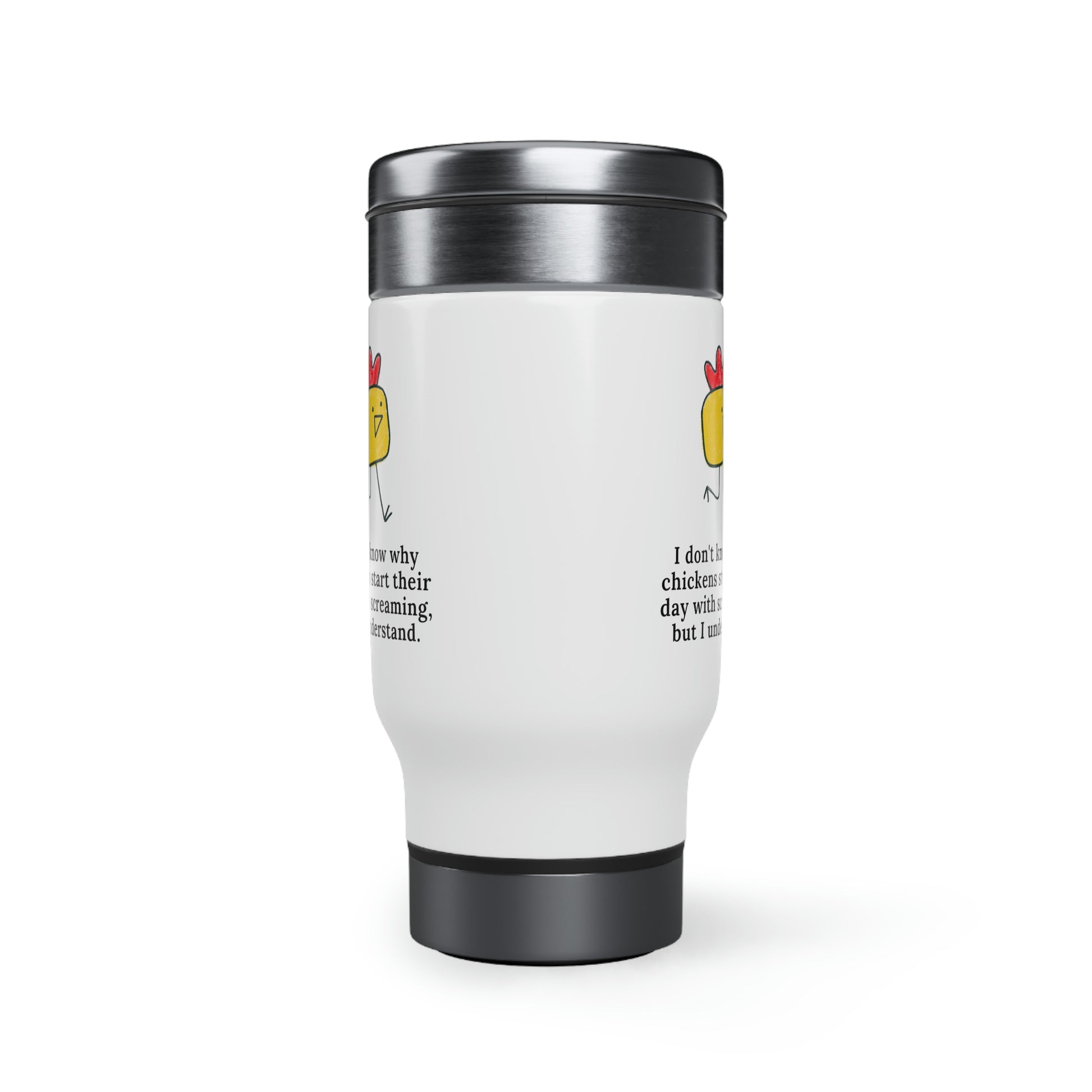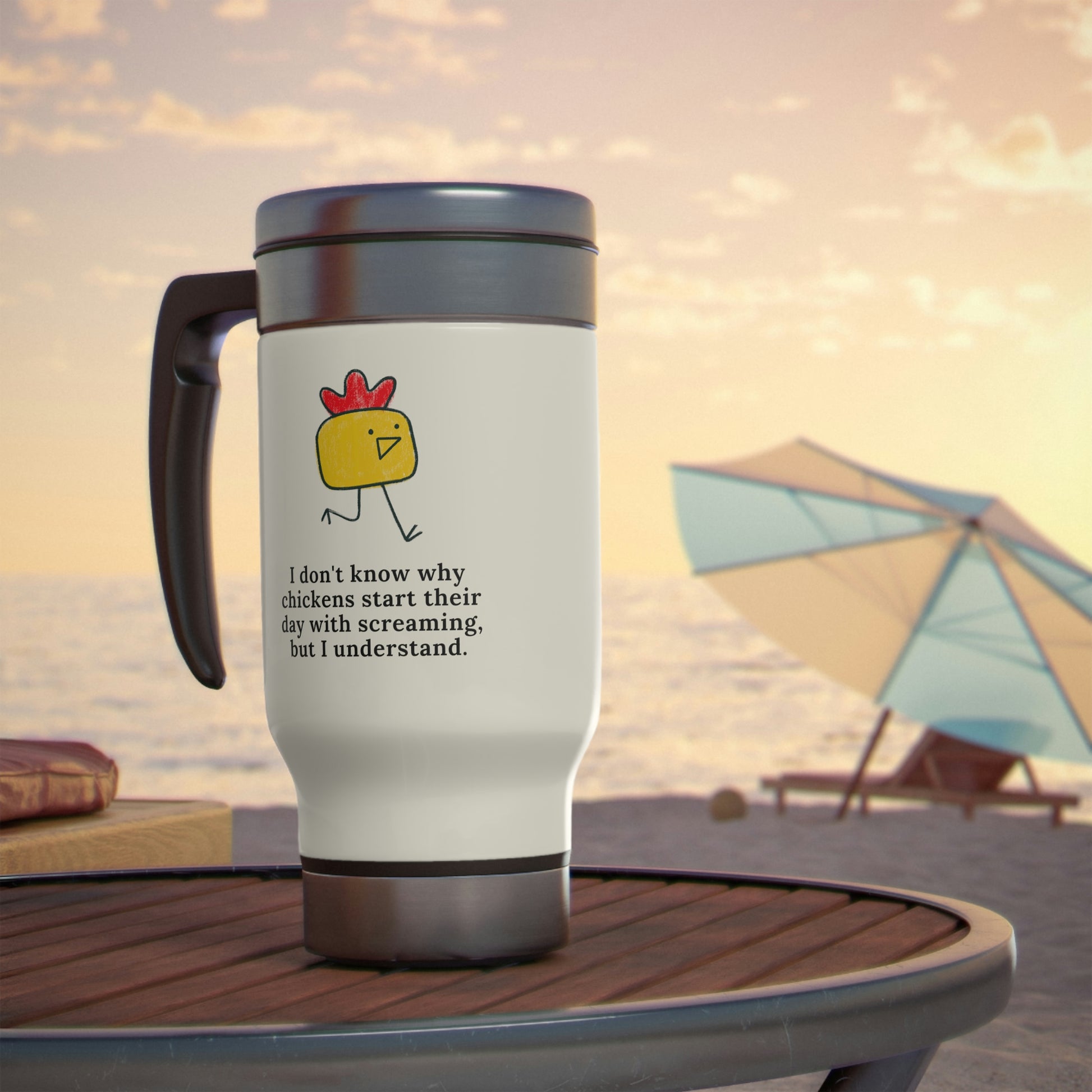 I Don't Know Why Chickens Start Their Day Screaming Travel Mug with Handle, 14oz